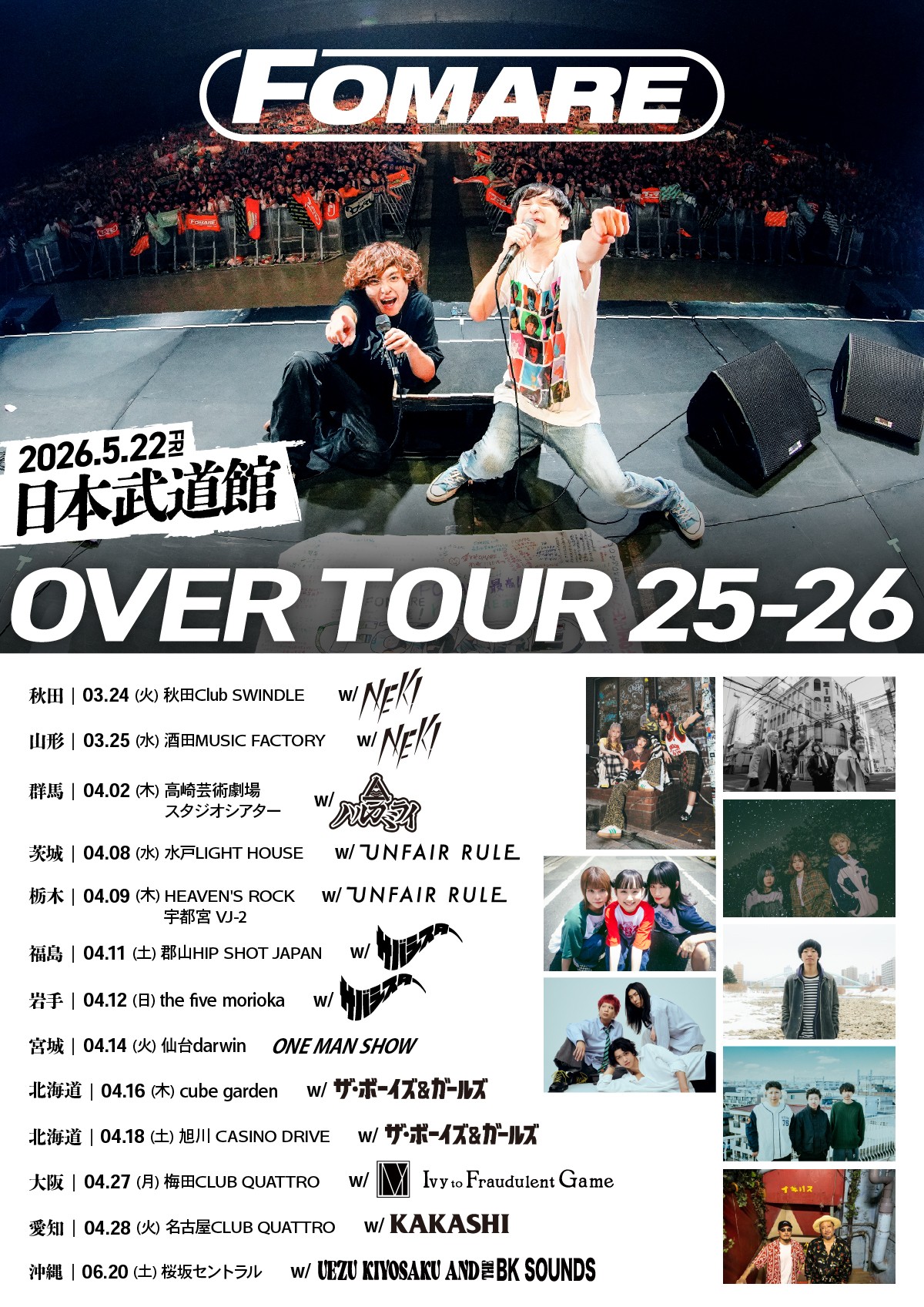 FOMARE / サバシスター [addtoany] 2026/04/12START18:00OPEN17:30 @the five morioka タイトル OVER TOUR 25-26 料金 オールスタンディング 前売4800円(+1D 600円) 出演者 FOMARE / サバシスター お問い合わせ 022-256-1000(ノースロードミュージック) TICKET SOLD OUT!! *未就学児入場不可 >ノースロードミュージック