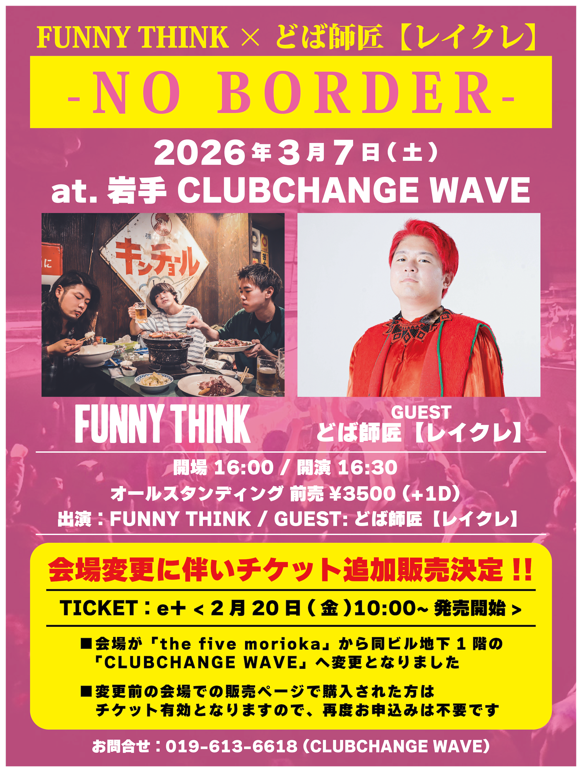 ・会場が「the five morioka」から同ビル地下1階の「CLUBCHANGE WAVE」へ変更となりました。