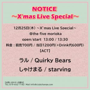 オールスタンディング 前売700円 当日1200円(+1D 600円)