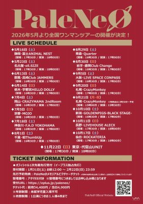 受付期間:2026年1月31日(土) 12:00 ~ 2026年2月22日(日) 23:59先行予約特典:PaleNeØメモリアルピクチャーチケット